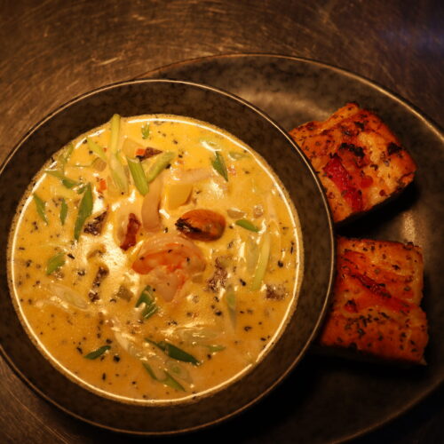 Традиционный густой американский суп из моллюсков, бульона, ...