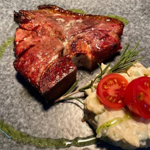 Пряный стейк из говядины с картофельным салатом
