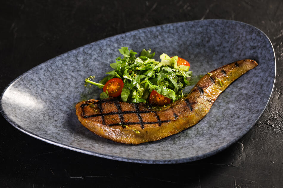 Изысканное блюдо из морепродуктов с дымным ароматом, нежной ...