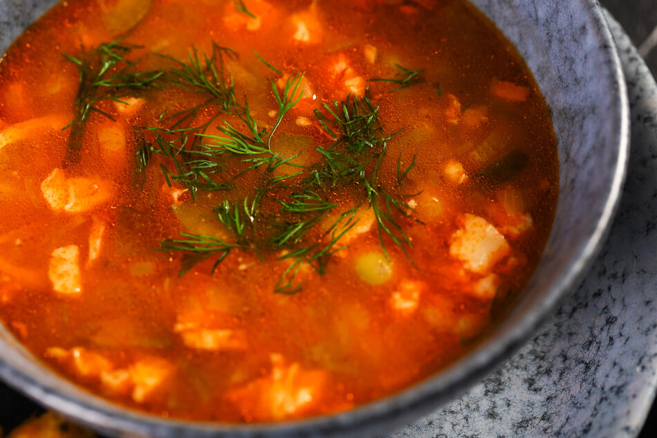 Густой, острый и наваристый суп русской кухни, приготовленный на крутом бульоне (мясном) с добавлением солёных огурцов, рассола, пряностей, оливок и лимона. Отличается ярко выраженным кисло-солёным вкусом и сочетанием нескольких видов копченостей.